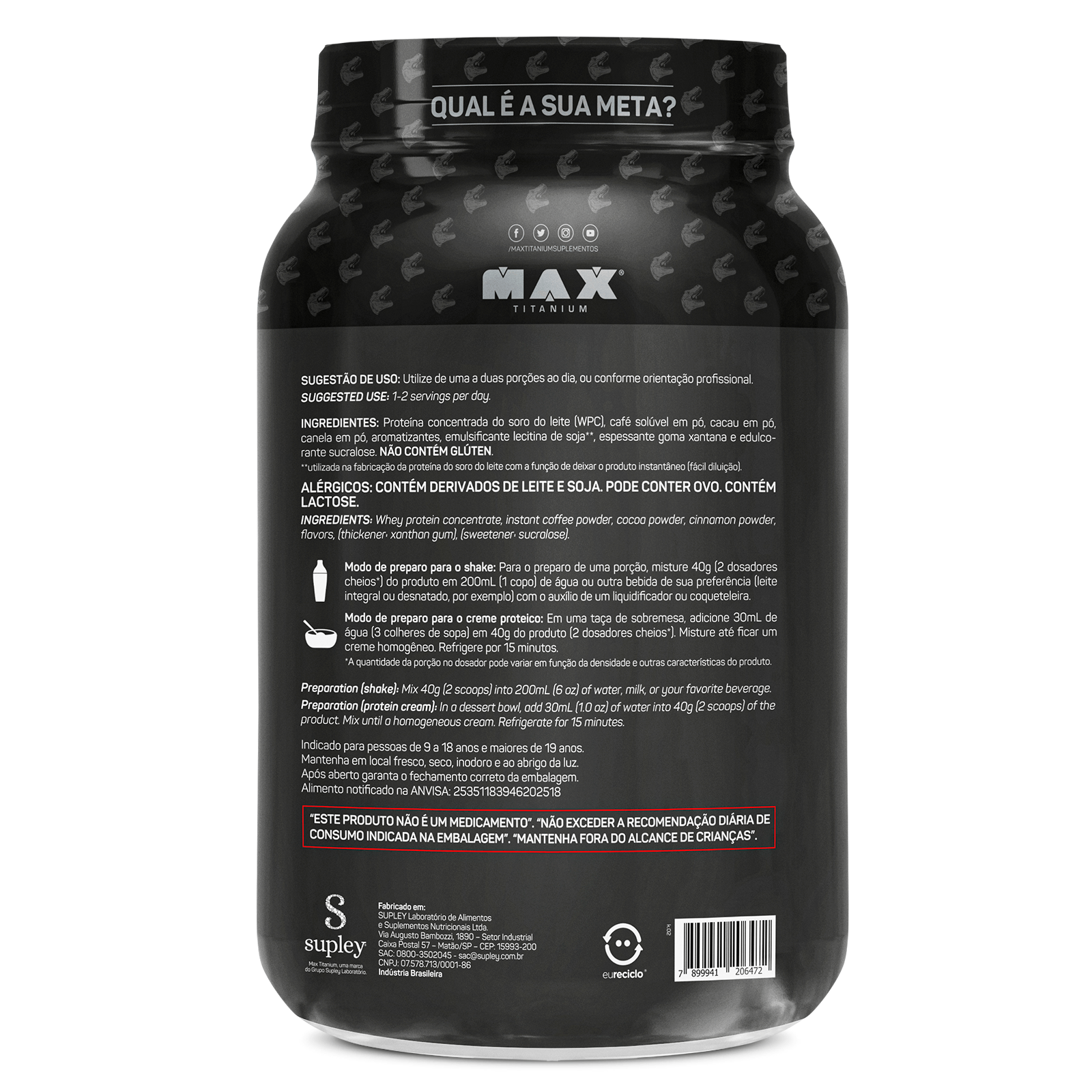 O 100% Whey Protein Concentrado Linha Ramon Dino Pote 900G da Max Titanium é a escolha ideal para quem busca uma proteína de alta qualidade para potencializar os seus objetivos de treino. Composto por proteína concentrada do soro do leite (WPC), este suplemento passa por um avançado processo de filtração que preserva nutrientes essenciais, como proteínas, lactose e minerais, enquanto reduz a quantidade de gordura e carboidratos. Cada porção oferece até 20g de proteína, auxiliando no ganho de massa muscular, recuperação pós-treino e manutenção da massa magra.