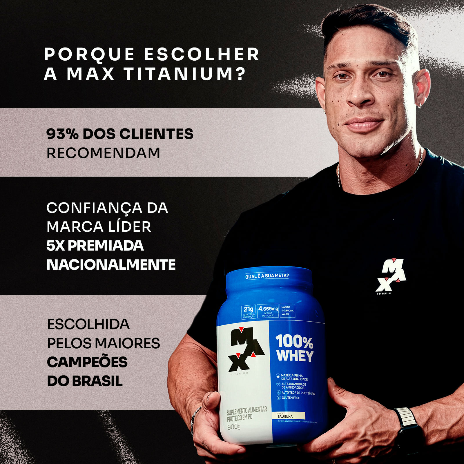 O 100% Whey Protein Concentrado Pote 900G da Max Titanium é a escolha ideal para quem busca uma proteína de alta qualidade para potencializar os seus objetivos de treino. Composto por proteína concentrada do soro do leite (WPC), este suplemento passa por um avançado processo de filtração que preserva nutrientes essenciais, como proteínas, lactose e minerais, enquanto reduz a quantidade de gordura e carboidratos. Cada porçãodose oferece até 20g de proteína, auxiliando no ganho de massa muscular, recuperação pós-treino e manutenção da massa magra.