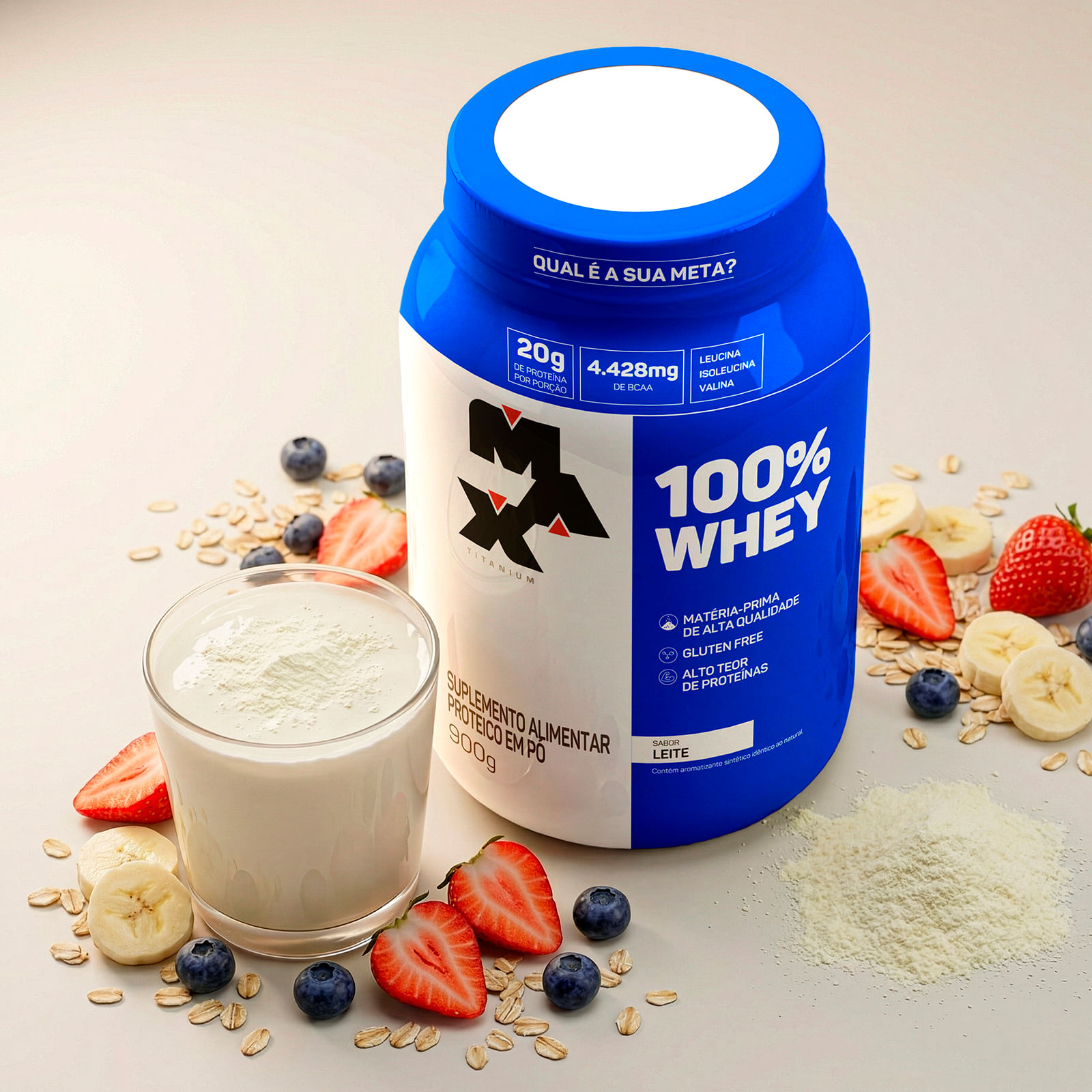O 100% Whey Protein Concentrado Pote 900G da Max Titanium é a escolha ideal para quem busca uma proteína de alta qualidade para potencializar os seus objetivos de treino. Composto por proteína concentrada do soro do leite (WPC), este suplemento passa por um avançado processo de filtração que preserva nutrientes essenciais, como proteínas, lactose e minerais, enquanto reduz a quantidade de gordura e carboidratos. Cada porçãodose oferece até 20g de proteína, auxiliando no ganho de massa muscular, recuperação pós-treino e manutenção da massa magra. Desenvolvido com ingredientes cientificamente selecionados, este suplemento garante pureza, eficácia e segurança. Experimente o 100% Whey Protein Concentrado Pote 900G e descubra como maximizar seus resultados com um sabor incomparável.