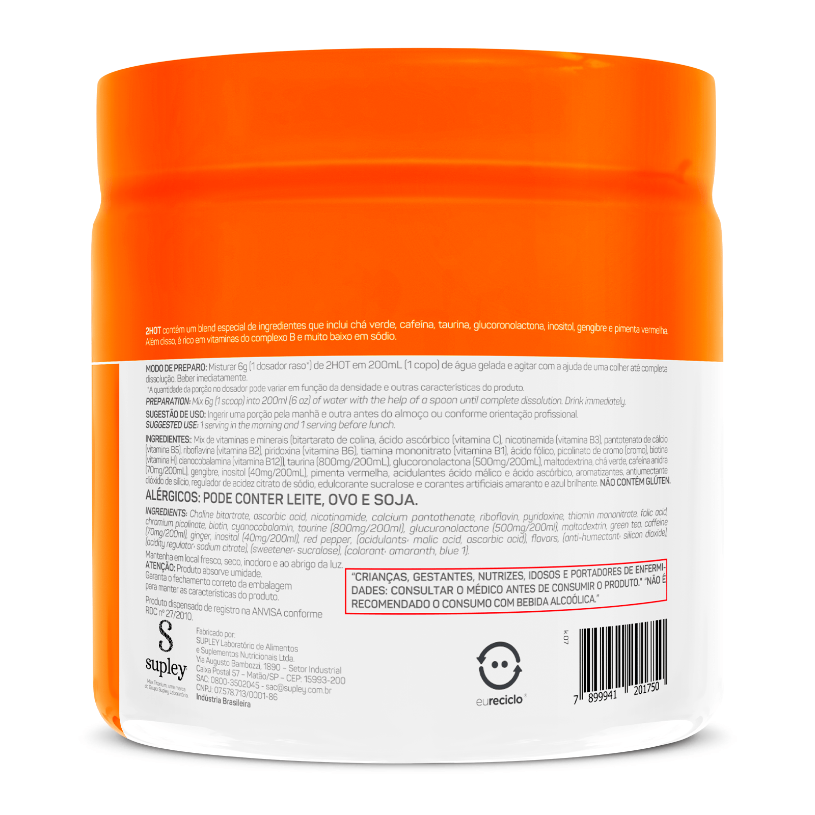 2HOT possui, dentre seus ingredientes, taurina e a cafeína, que auxilia no aumento do estado de alerta e na melhora da concentração.