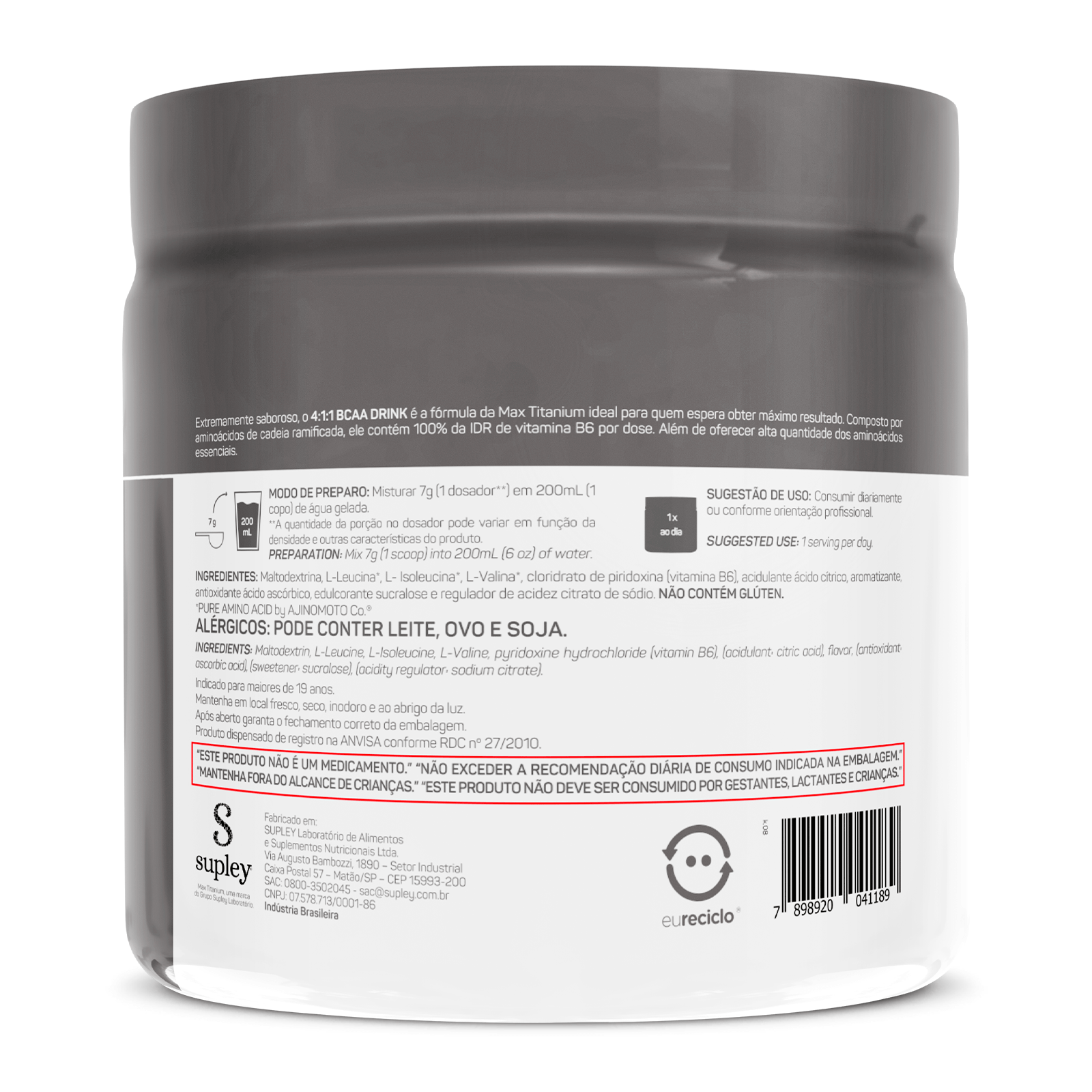 Extremamente saboroso e disponível em quatro versões, o 4:1:1 BCAA DRINK é a fórmula da Max Titanium ideal para quem espera obter máximo resultado. Composto por aminoácidos de cadeia ramificada, ele contém 100% da IDR de vitamina B6 por dose. Além de oferecer alta quantidade dos aminoácidos essenciais.