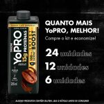 Energize seu dia com YoPRO Energy Boost UHT 15g de Proteínas Café Expresso! YoPRO é a marca especialista em criar produtos com alto teor de proteínas, práticos e deliciosos para quem busca uma rotina ativa e saudável. YoPRO é proteína, energia, sabor e praticidade para sua rotina. O YoPRO Energy BOOST UHT contém 15g de proteínas, proporcionando saciedade e auxiliando na construção e recuperação muscular¹, Whey e Caseína. É zero lactose e fonte de cálcio. Além de todos esses benefícios, conta também com uma dose de 100mg cafeína, que equivale a um expresso duplo, trazendo energia e foco para os seus treinos. É essencial para você que pratica exercícios físicos regularmente e quer dar um boost em seu desempenho. Além de auxiliar no seu consumo diário de proteínas, é um aliado para sua performance física e seu bem-estar, complementando a sua rotina de forma saudável e saborosa. Você pode consumir seu YoPRO Energy BOOST a qualquer momento, seja como parte do seu café da manhã, como lanche entre as refeições ou antes e depois dos treinos. Sua fórmula prática e deliciosa permite que você o leve para onde quiser, seja na academia ou no trabalho. CARACTERÍSTICAS • YoPRO ENERGY BOOST é mais proteínas, energia e foco pra sua rotina. • Contém 15g de proteínas por porção de 250ml. • Cada porção contém 100mg de cafeína, o equivalente a um expresso duplo. • A cafeína aumenta o estado de alerta e melhora a concentração. • Contém 9 aminoácidos essenciais, Whey e Caseína, é zero lactose e fonte de cálcio. • Prático e pronto para consumo, é perfeito para acompanhar a rotina agitada do dia a dia. • Você pode levar para qualquer lugar, a qualquer hora. • Com proteínas que ajudam na recuperação e no ganho de massa muscular¹ • Sabores deliciosos, nas versões Café expresso e Cappuccino. • Seu pré ou pós-treino proteico, prático e delicioso² • Rico em proteínas e cafeína para te ajudar a alcançar melhores resultados. ¹ aliado a uma rotina regular de treinos e alimentação saudável. ² recomendação diária de consumo é de 1 produto, e deve ser feita por maiores de 19 anos. Consulte seu médico e/ou nutricionista. Ingredientes leite e/ou leite reconstituído parcialmente desnatado, proteína concentrada de leite, proteína de soro de leite concentrada, amido modificado, café solúvel, soro de leite, cafeína, estabilizantes celulose microcristalina, citrato de sódio, carboximetilcelulose sódica e goma gelana, reguladores de acidez fosfato dipotássico e fosfato dissódico, aromatizante e edulcorante sucralose. NÃO CONTÉM GLÚTEN. ALÉRGICOS: CONTÉM LEITE E DERIVADOS. PODE CONTER SOJA.