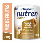 Composto lácteo com cálcio, proteínas, vitamina D e outros nutrientes essenciais. Reduzido em açúcares (este não é um alimento baixo ou reduzido em valor energético – comparado ao alimento de referência do mesmo fabricante). Nutren Senior Mix de Frutas 740g é prático, versátil e não tem sabor: você pode adicioná-lo em qualquer preparação – doce, salgado, bebida, sopas, molhos e o que mais você desejar. Contém Leite e Derivados e Derivados de soja. Contém Lactose. Não contém Glúten. Este produto não é leito em pó. Manter a lata sempre bem fechada em local fresco, seco e inodoro. Iniciado o uso de produto, recomenda-se o consumo em até 30 dias. Consumir imediatamente após preparo. Durante o transporte este produto pode se compactar. No entanto, seu volume e conteúdo correspondem ao peso líquido indicado no rótulo. Ingredientes:  Leite integral, maltodextrina, concentrado proteico de soro de leite caseinato de cálcio, minerais (citrato de cálcio, sais de magnésio do ácido cítrico, sulfato de zinco, pirofosfato férrico, sulfato de manganês, sulfato de cobre e selenato de sódio), proteína de soja isolada, polidextrose, colágeno hidrolisado, vitaminas (L-ascorbato de sódio, acetato de DL-alfa-tocoferila, nicotinamida, D-pantotenato de cálcio, cloridrato de piridoxina, tiamina mononitrato, acetato de retinila, riboflavina, fitomenadiona, ácido N-pteroil-L-glutâmico, colecalciferol, D-biotina e cianocobalamina), reguladores de acidez citrato de potássio, hidróxido de potássio e ácido cítrico, aromatizante, emulsificante lecitina e edulcorante sucralose. Modo de preparo: 1 Coloque em um copo 3 colheres de sopa cheias (31,5g) em seguida 50ml de leite desnatado, 2 Misture bem até a formar uma pasta cremosa, 3 adicione mais 130ml do leite mexa bem até diluir. Contém Leite e Derivados e Derivados de soja. Contém Lactose. Não contém Glúten. Este produto não é leito em pó. Não contém glúten  NÃO CONTÉM GLÚTEN. ALÉRGICOS: CONTÉM LEITE E DERIVADOS E DERIVADOS DE SOJA. CONTÉM LACTOSE. NÃO CONTÉM GLÚTEN