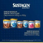 Sustagen Adultos é o complemento alimentar para adultos a partir de 35 anos, fonte de ferro, fonte de proteína¹ e enriquecido com 27 vitaminas e minerais, que ajudam a manter a energia², a imunidade³ e o bom funcionamento dos ossos4 e músculos5. Sustagen Adultos não substitui a alimentação saudável e balanceada. Seu consumo deve estar associado a uma dieta equilibrada e hábitos de vida saudáveis. Consulte sempre um médico ou nutricionista. NÃO CONTÉM GLÚTEN. ¹Quando adicionado no leite. ² Contém vitaminas B1, B2, B3, B6 e B12, que participam da geração de energia. 3Contém vitamina C e o zinco que auxiliam no funcionamento do sistema imune. 3 Rico em cálcio e em vitamina D que contribuem para a manutenção dos ossos.   4  Fonte de proteínas, quando adicionado ao leite, e contém magnésio, que auxiliam no funcionamento muscular. Contém proteínas que contribuem para a formação dos músculos. Contém vitaminas do complexo B, que participam da geração de energia. Rico em vitamina D e cálcio que auxiliam na saúde óssea. Você encontra Sustagen Adultos+ em quatro deliciosos sabores: baunilha, chocolate, morango e banana. Sustagen Adultos+ é um aliado do dia a dia para uma alimentação equilibrada que, somando à pratica de atividades físicas, complementam um estilo de vida saudável. A administração de Sustagen não exclui a necessidade manter uma alimentação equilibrada, prática de exercício físico regular e hábitos de vida saudáveis. Não contém glúten; alérgicos: contém leite e derivados de soja; contém lactose Não contém glúten; Alérgicos: contém leite e derivados de soja; contém lactose.