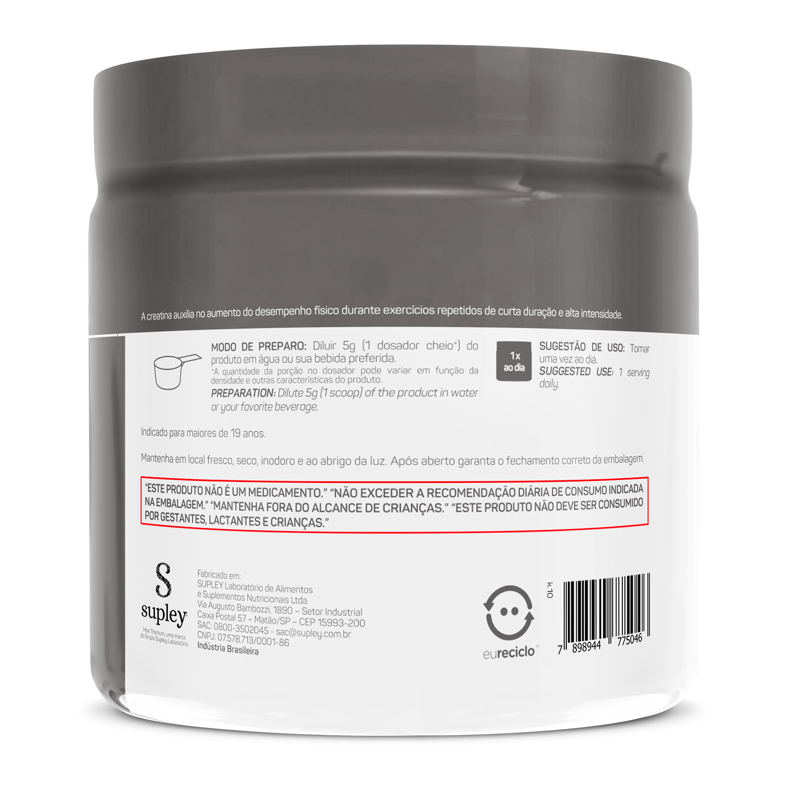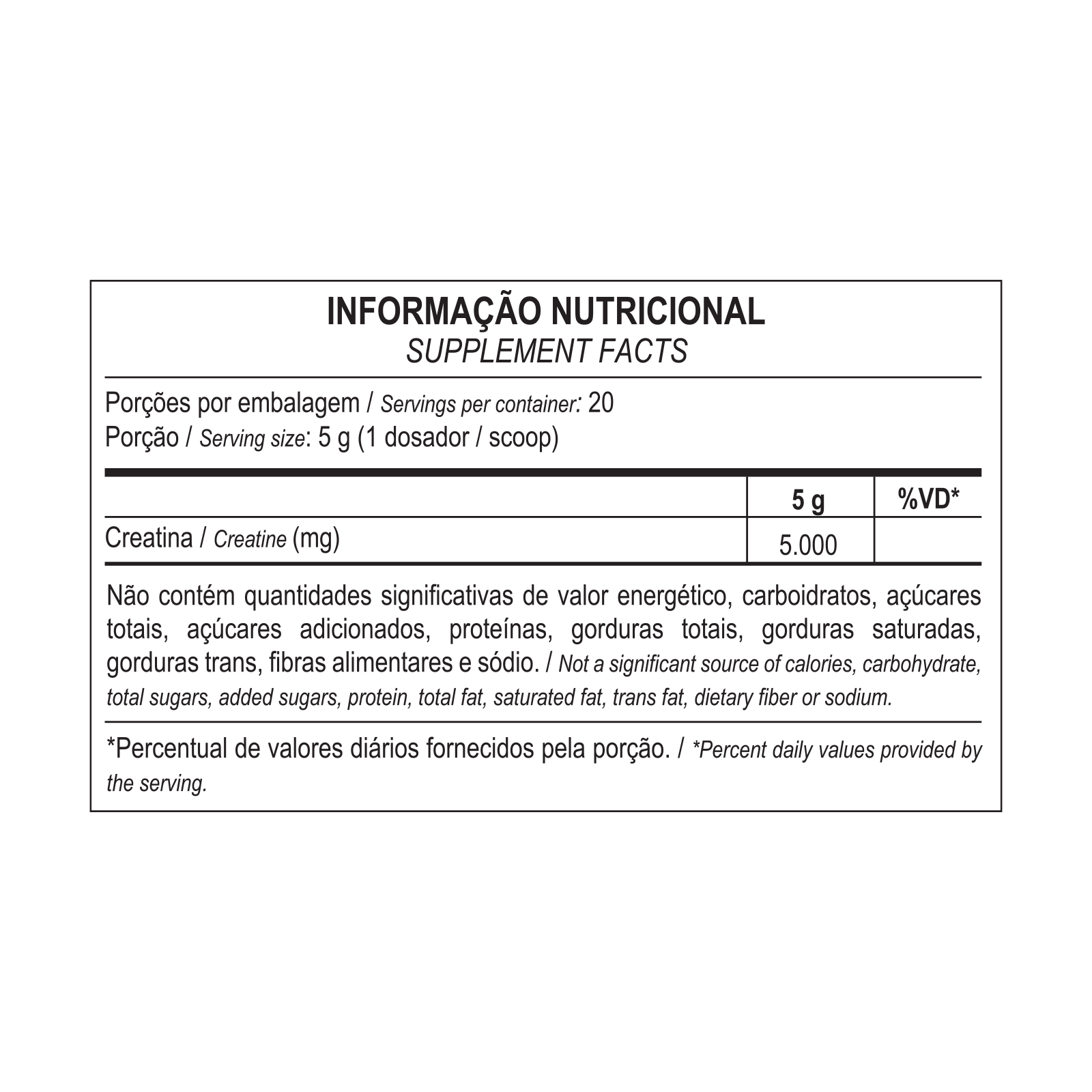 A creatina auxilia no aumento do desempenho f�sico durante exerc�cios repetidos de curta dura��o e alta intensidade. Formada a partir da associa��o de tr�s amino�cidos de alto valor biol�gico (arginina, glicina e metionina), a creatina est� presente naturalmente em nosso organismo, sendo que cerca de 95% do seu conte�do � armazenado no m�sculo esquel�tico.Recomenda-se a ingest�o desta subst�ncia juntamente com um carboidrato de alto �ndice glic�mico para facilitar o seu transporte para dentro das c�lulas musculares.