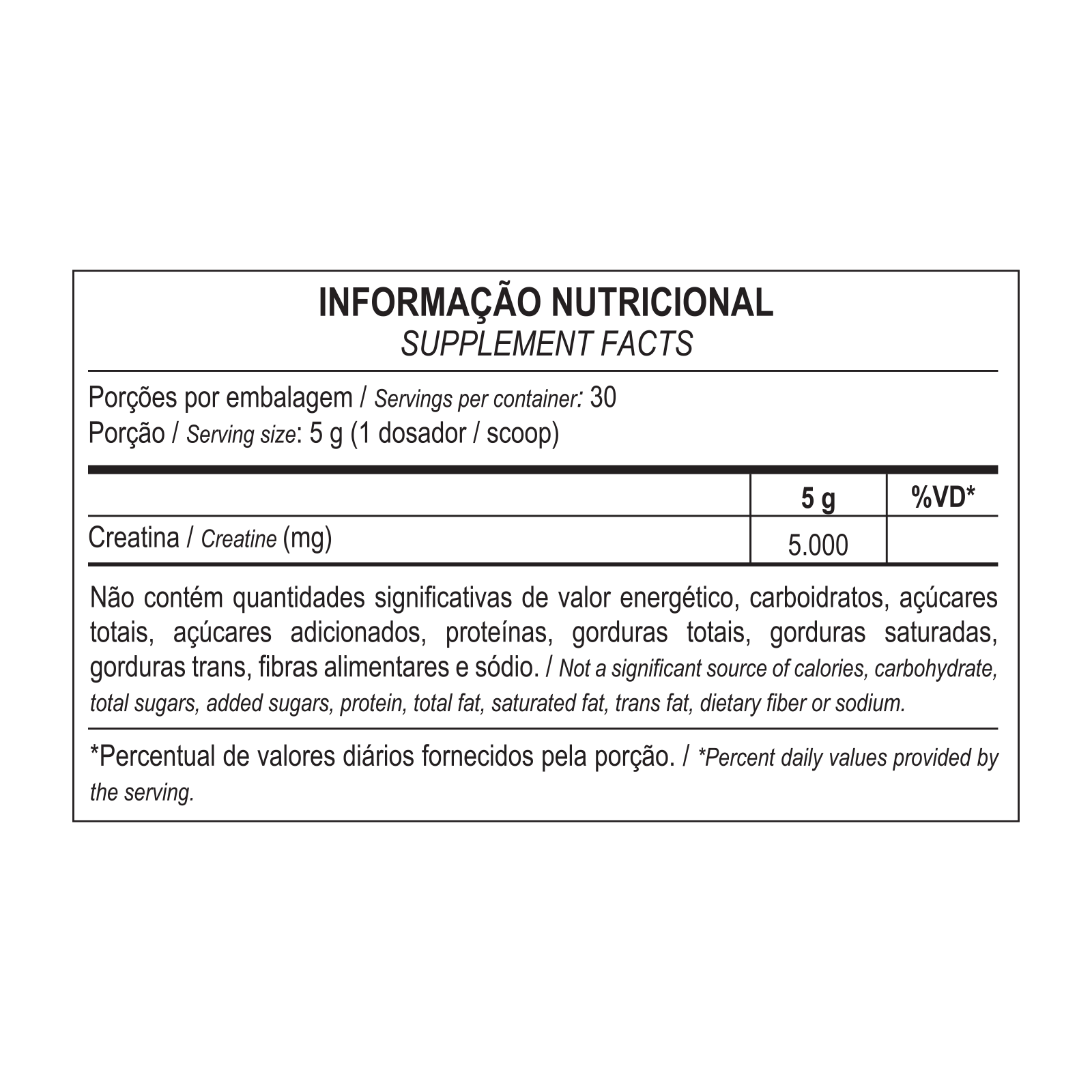 A creatina auxilia no aumento do desempenho f�sico durante exerc�cios repetidos de curta dura��o e alta intensidade. Formada a partir da associa��o de tr�s amino�cidos de alto valor biol�gico (arginina, glicina e metionina), a creatina est� presente naturalmente em nosso organismo, sendo que cerca de 95% do seu conte�do � armazenado no m�sculo esquel�tico. Recomenda-se a ingest�o desta subst�ncia juntamente com um carboidrato de alto �ndice glic�mico para facilitar o seu transporte para dentro das c�lulas musculares.
