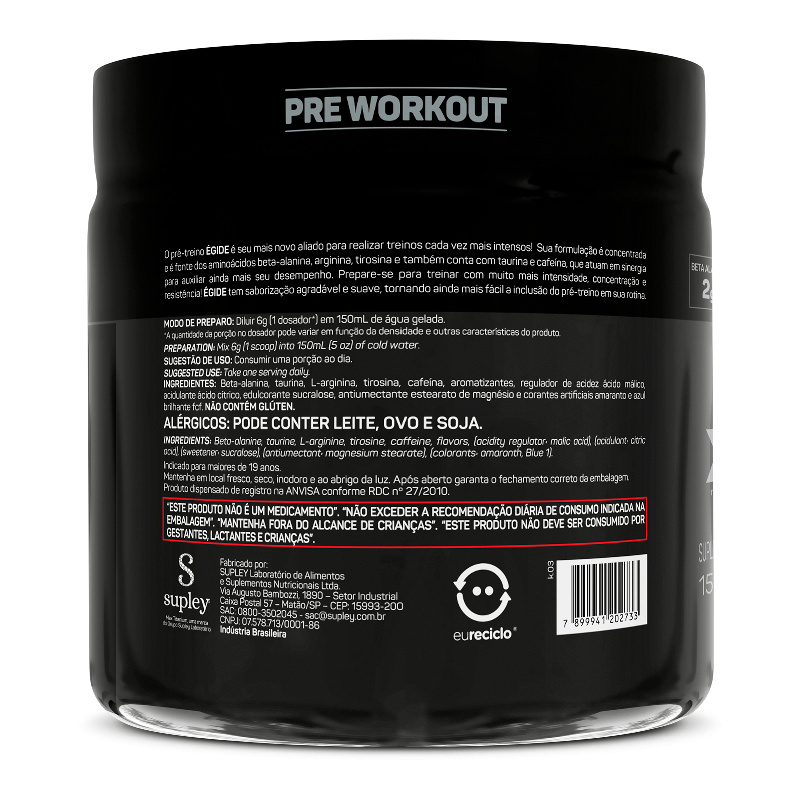 O Égide Pré-Treino da Max Titanium foi desenvolvido para quem busca mais energia, foco e intensidade nos treinos. Sua fórmula combina ingredientes estratégicos que auxiliam no aumento da disposição física e mental , ajudando você a treinar com mais força e concentração do início ao fim. Ideal para musculação, treinos de alta intensidade e atividades que exigem explosão e resistência, o Égide é o aliado certo para elevar a performance e manter a motivação em níveis máximos. Com a qualidade reconhecida da Max Titanium, é a escolha ideal para quem não aceita treinos medianos.