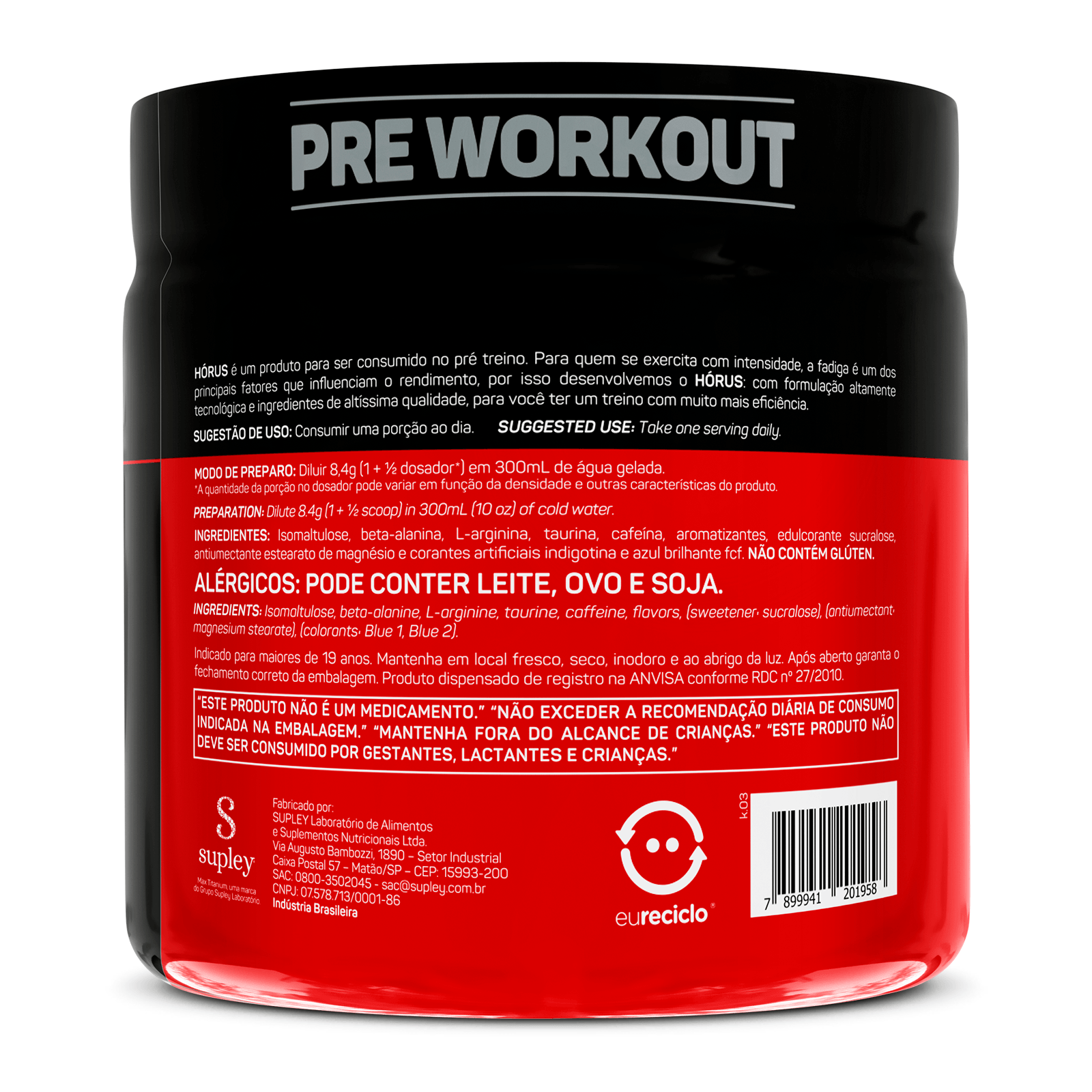 HÓRUS é um produto para ser consumido no pré treino. Para quem se exercita com intensidade, a fadiga é um dos principais fatores que influenciam o rendimento, por isso desenvolvemos o HÓRUS : com formulação altamente tecnológica e ingredientes de altíssima qualidade, para você ter um treino com muito mais eficiência