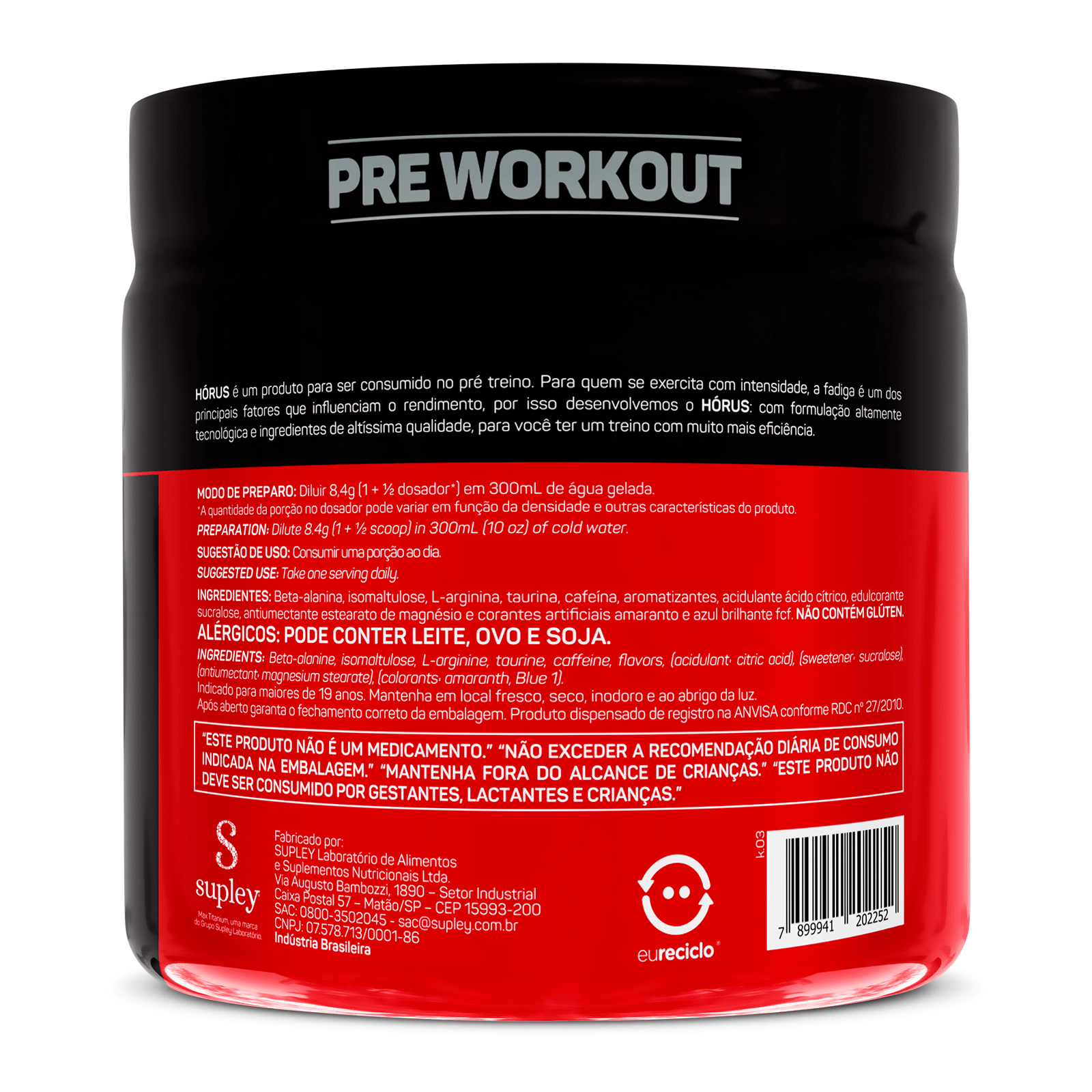 HÓRUS é um produto para ser consumido no pré treino. Para quem se exercita com intensidade, a fadiga é um dos principais fatores que influenciam o rendimento, por isso desenvolvemos o HÓRUS : com formulação altamente tecnológica e ingredientes de altíssima qualidade, para você ter um treino com muito mais eficiência