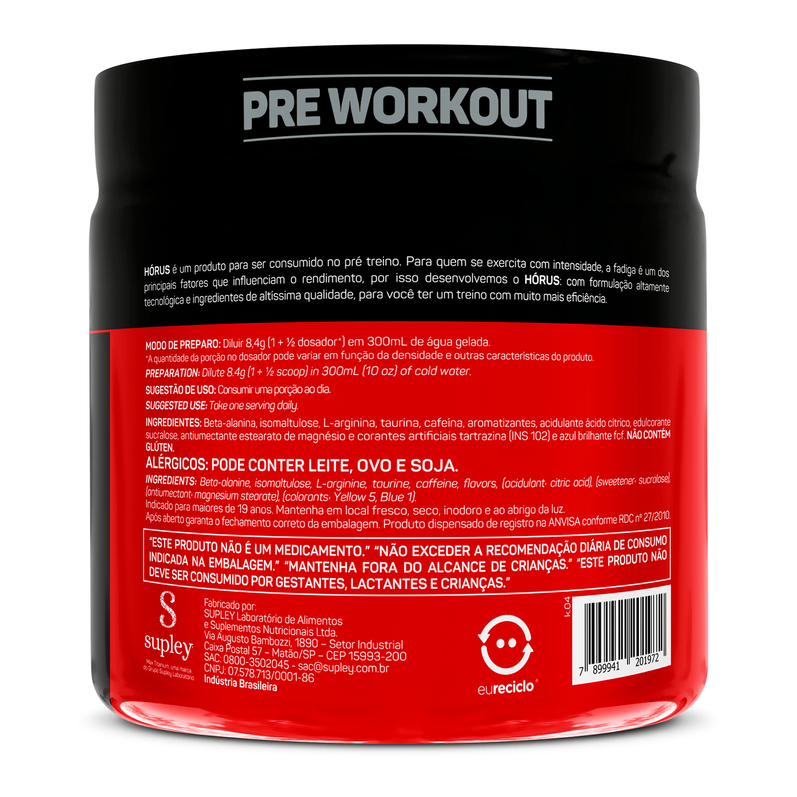 HÓRUS é um produto para ser consumido no pré treino. Para quem se exercita com intensidade, a fadiga é um dos principais fatores que influenciam o rendimento, por isso desenvolvemos o HÓRUS : com formulação altamente tecnológica e ingredientes de altíssima qualidade, para você ter um treino com muito mais eficiência