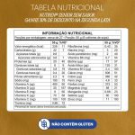 Ingredientes: Leite integral, maltodextrina, proteína de soro do leite concentrada, proteína de soja isolada, polidextrose, caseinato de cálcio, colágeno hidrolisado, minerais (sais de magnésio do ácido cítrico, fosfato tricálcico, hidrogênio fosfato dipotássico, citrato de cálcio tetraidratado, pirofosfato férrico, sulfato de zinco, sulfato de manganês, sulfato cúprico e selenato de sódio), vitaminas (L-ascorbato de sódio, acetato de DL-alfa-tocoferila, nicotinamida, D-pantotenato de cálcio, cloridrato de piridoxina, tiamina mononitrato, acetato de retinila, riboflavina, ácido fólico, fitomenadiona, colecalciferol, D-biotina e cianocobalamina), reguladores de acidez citrato de potássio, hidróxido de potássio e ácido cítrico e emulsificante lecitina.