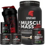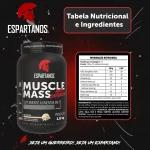 Kit Muscle Mass 1,8kg + BCAA + Creatina + Glutamina + Pré Treino Limão + Coqueteleira – Espartanos – SABOR: Baunilha