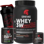 Kit Whey Protein 3W + Pré Treino + Glutamina + Shaker – Sabor: Chocolate