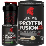 Kit Whey Protein Fusion + Pré Treino Muscle Pump Limão + Shaker – Espartanos – Sabor: Baunilha