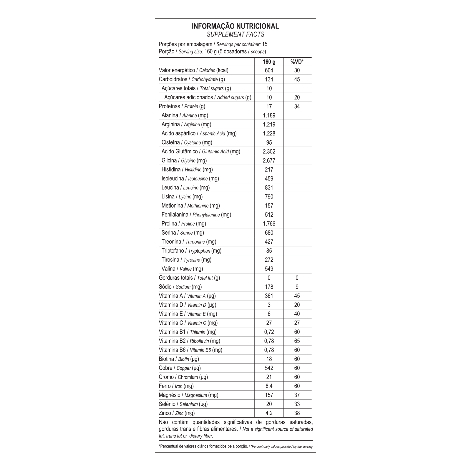 Sua fórmula conta ainda com vitaminas e minerais que contribuem para a metabolização dos macronutrientes.