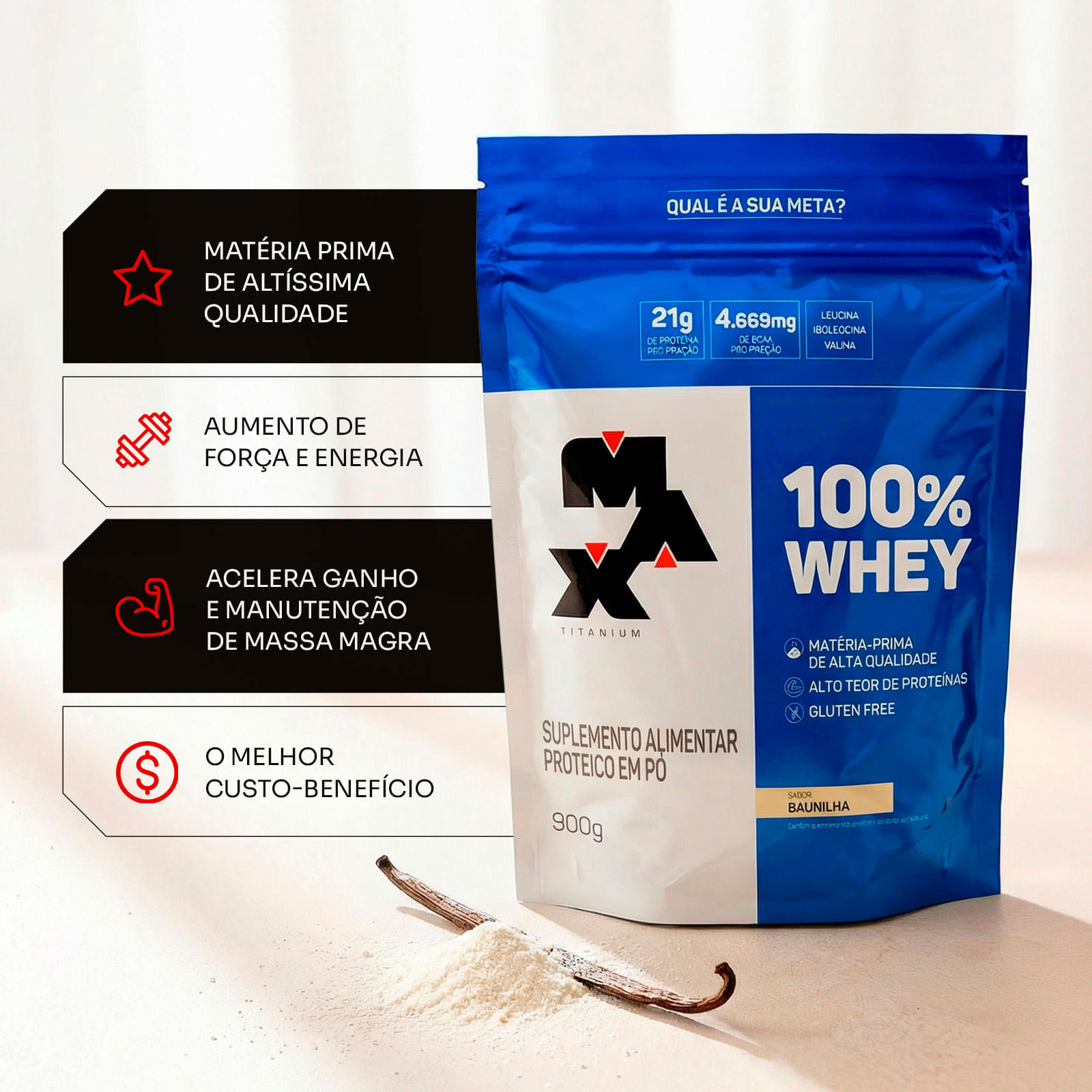 Pack 2x 100% Whey Refil 900G Baunilha + Baunilha
