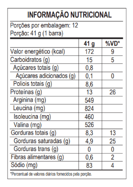 É fonte de proteínas, conta com aporte de carboidratos de baixo índice glicêmico, TCM e possui apenas os açúcares naturalmente presentes em seus ingredientes.