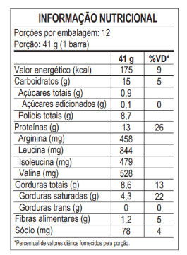 É fonte de proteínas, conta com aporte de carboidratos de baixo índice glicêmico, TCM e possui apenas os açúcares naturalmente presentes em seus ingredientes.