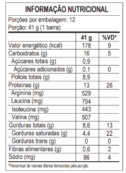 É fonte de proteínas, conta com aporte de carboidratos de baixo índice glicêmico, TCM e possui apenas os açúcares naturalmente presentes em seus ingredientes.