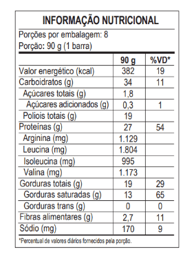 Você está preparado para uma barra com um recheio muito cremoso e sabor maravilhoso, sem abrir mão da dieta? A barra POWER PROTEIN BAR , além de nutritiva, foi formulada para suplementar e trazer saciedade aos praticantes de exercício físico e ainda pode ser uma ótima alternativa de lanche para o dia-a-dia. Formulada com alto teor de proteínas, conta ainda com aporte de carboidratos de baixo índice glicêmico e fibras, sendo uma excelente opção para períodos de treinos mais intensos. Possui também adição de TCM (triglicerídeos de cadeia média), gordura de rápida absorção no organismo, que constitui uma rápida fonte de energia. Nós sabemos que um sabor maravilhoso e um valor nutritivo incrível podem coexistir. Somos apaixonados em criar suplementos deliciosos!
