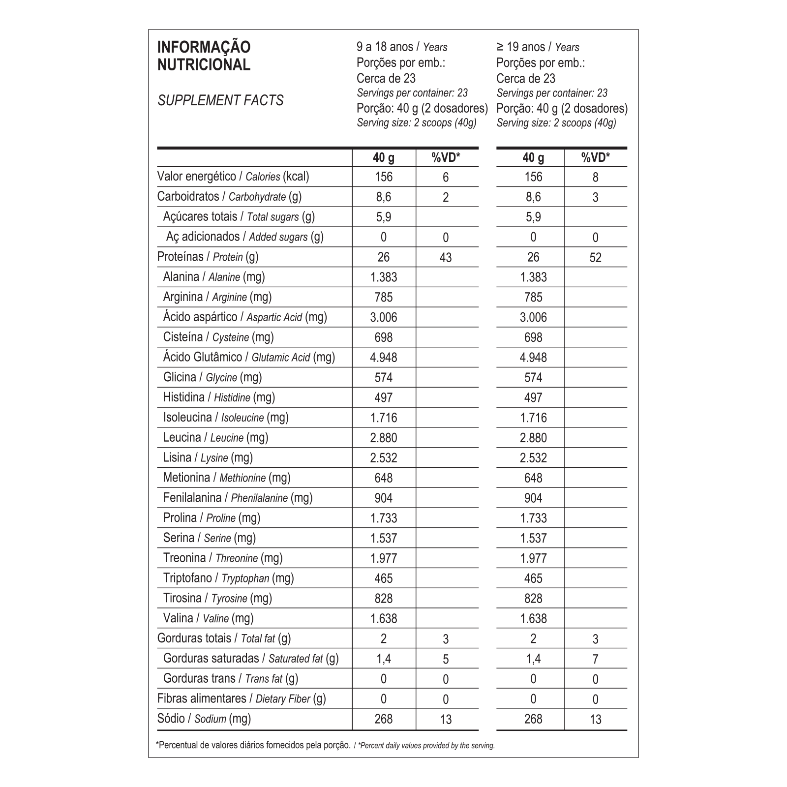 A linha Mais Natural fornece 26g de proteínas por porção, contendo altas quantidades de aminoácidos essenciais e com aromas, corantes e edulcorantes naturais (estévia e taumatina).