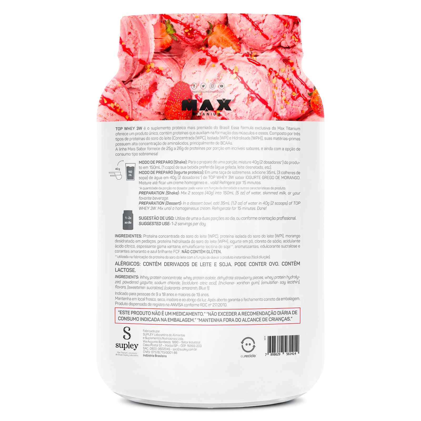 Essa fórmula exclusiva da Max Titanium oferece um produto único, contém proteínas que auxiliam na formação dos músculos.