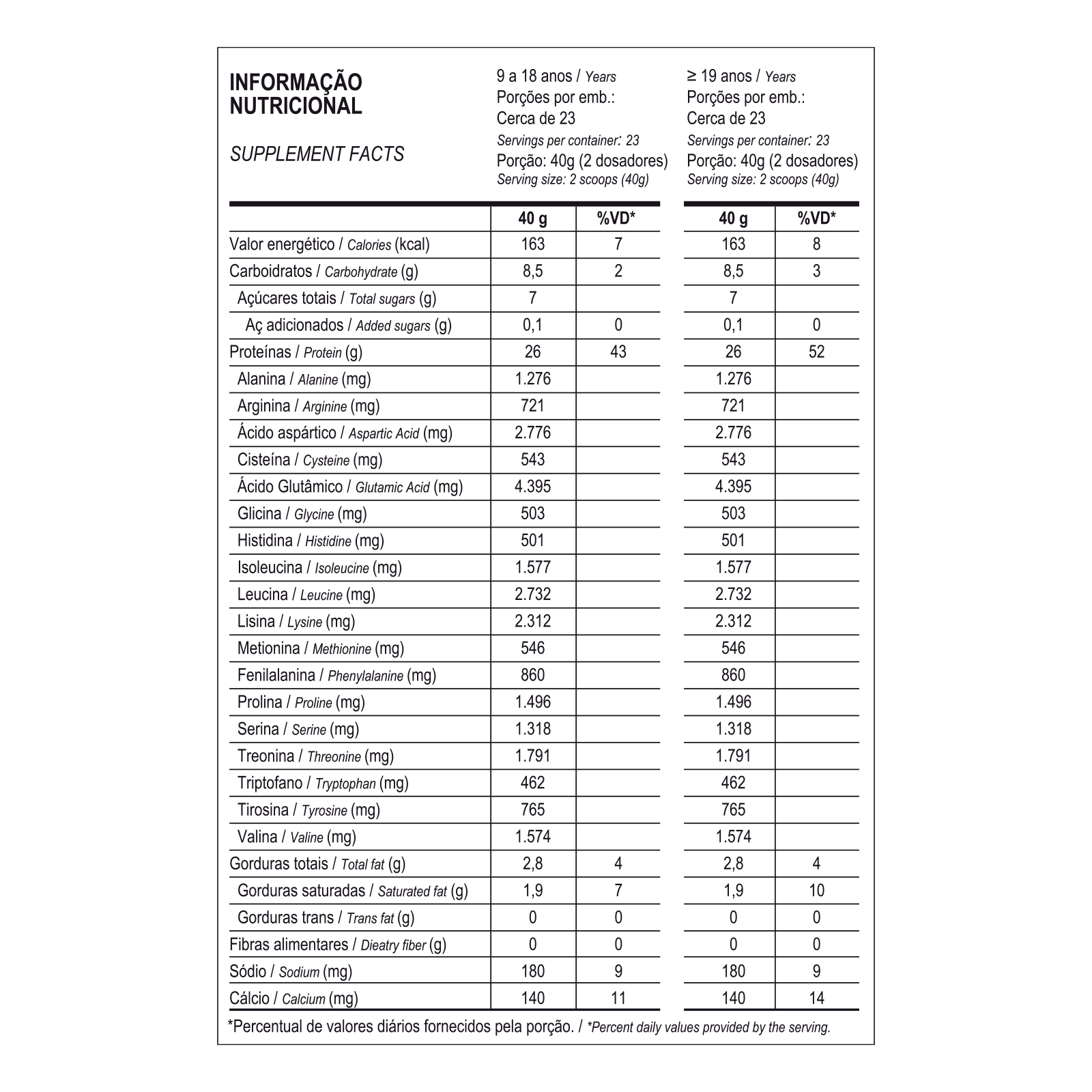 Composto por três tipos de proteínas do soro do leite (concentrada (WPC), isolada (WPI) e hidrolisada (WPH)), suas matérias-primas possuem alta concentração de aminoácidos, principalmente de BCAAs.